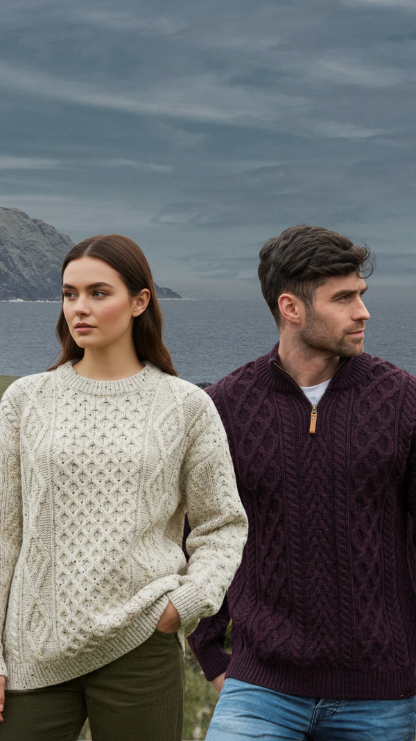 Aran Woollen Mills knitwear is made with 100% natural wool. The yarn and processes are sustainable and ultimately owe to versatile clothing for your wardrobe that can be worn often and washed less. Aran Woollen Mills knitwear comes in a range of traditional and contemporary yarns and designs, and makes the perfect authentic Irish gift for yourself or your loved one, delivered direct from our store on the Wild Atlantic Way.