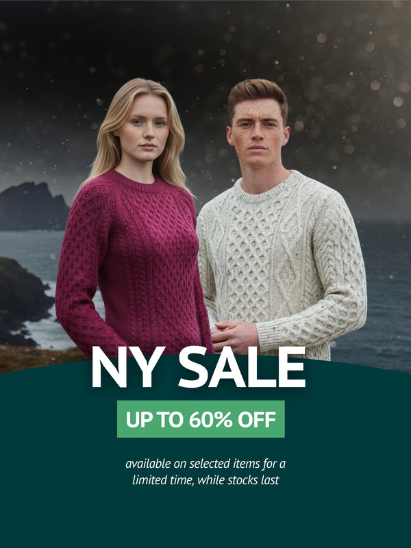 Aran Woollen Mills knitwear is made with 100% natural wool. The yarn and processes are sustainable and ultimately owe to versatile clothing for your wardrobe that can be worn often and washed less. Aran Woollen Mills knitwear comes in a range of traditional and contemporary yarns and designs, and makes the perfect authentic Irish gift for yourself or your loved one, delivered direct from our store on the Wild Atlantic Way.