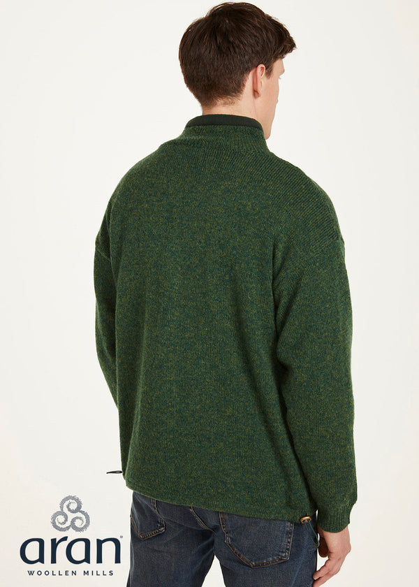 Men's Lined Wool Aran Cardigan | Green