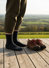Produced in Achill, these luxurious, 70% Wool, 20% Acrylic, 10% Polyester socks are super soft and cosy. Available in a choice of two colours including, green & Blue they have excellent wear ability with soft seams and smooth knit to ensure comfort. The Wool Mix ensures optimum temperature and comfort. Ideal for lounging in, or pairing with your favourite brogues.