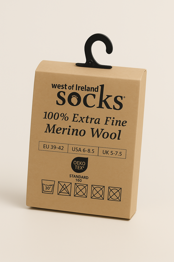 Crafted in the West of Ireland, these 100% Merino Wool socks are incredibly soft and comfortable. Choose from a variety of colors to add a touch of luxury to your wardrobe. Designed with soft seams and a smooth knit, these socks provide superb wearability and the perfect temperature. Whether you're lounging at home or wearing with your favorite brogues, these socks are a must-have for ultimate coziness.