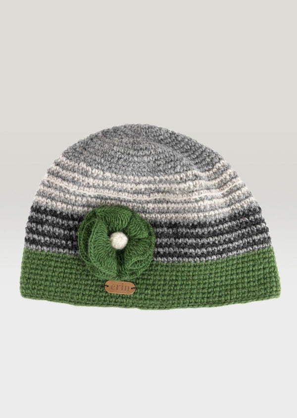 This handcrafted Crochet Cap from Erin Knitwear, Ireland is made from 100% Wool with a Polyester fleece lining for extra warmth. The cap is finished with a removable Knitted Flower Corsage for a stylish look and is comfortable to wear, one size stretches to fit 55cm to 61cm. Perfect for those chilly winter days.