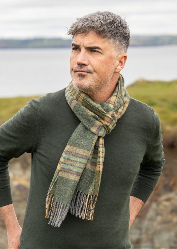 John Hanly Lambswool Cape | Green Brown Orange Cream Check