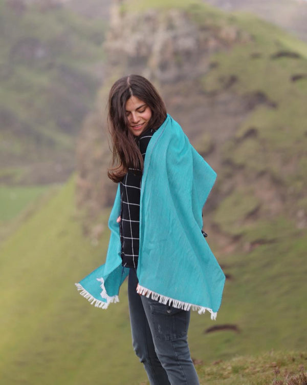 Aran Merino Wool Cowl Poncho | Aqua - Clearance